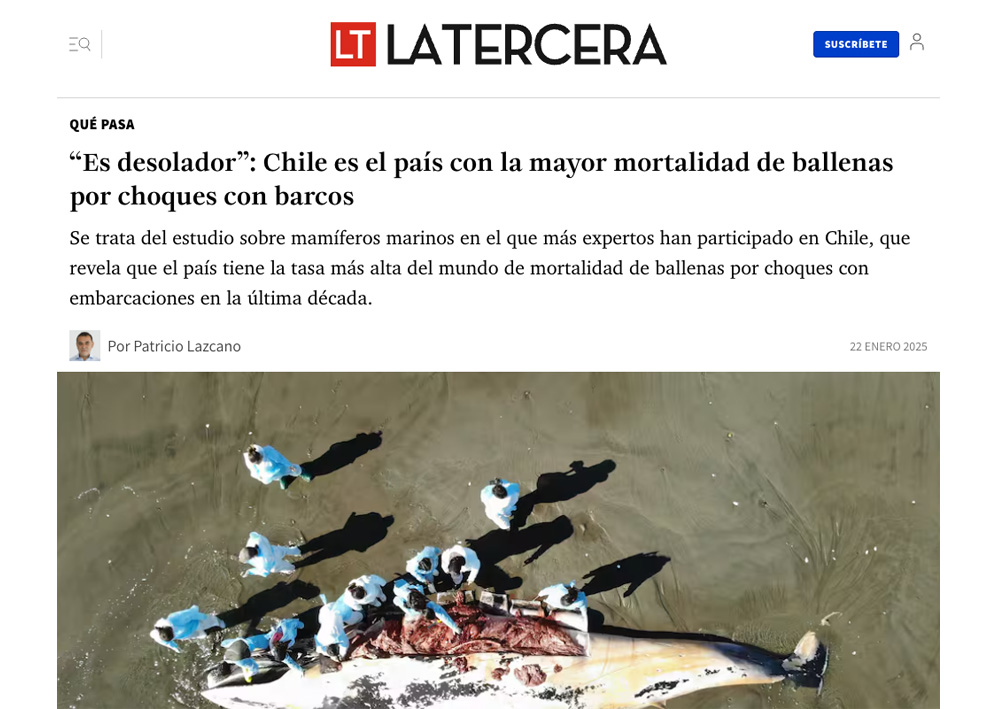 En enero de 2025, la siguiente noticia recorrió el mundo: Chile es el país que lidera la mortalidad de ballenas por colisiones.
